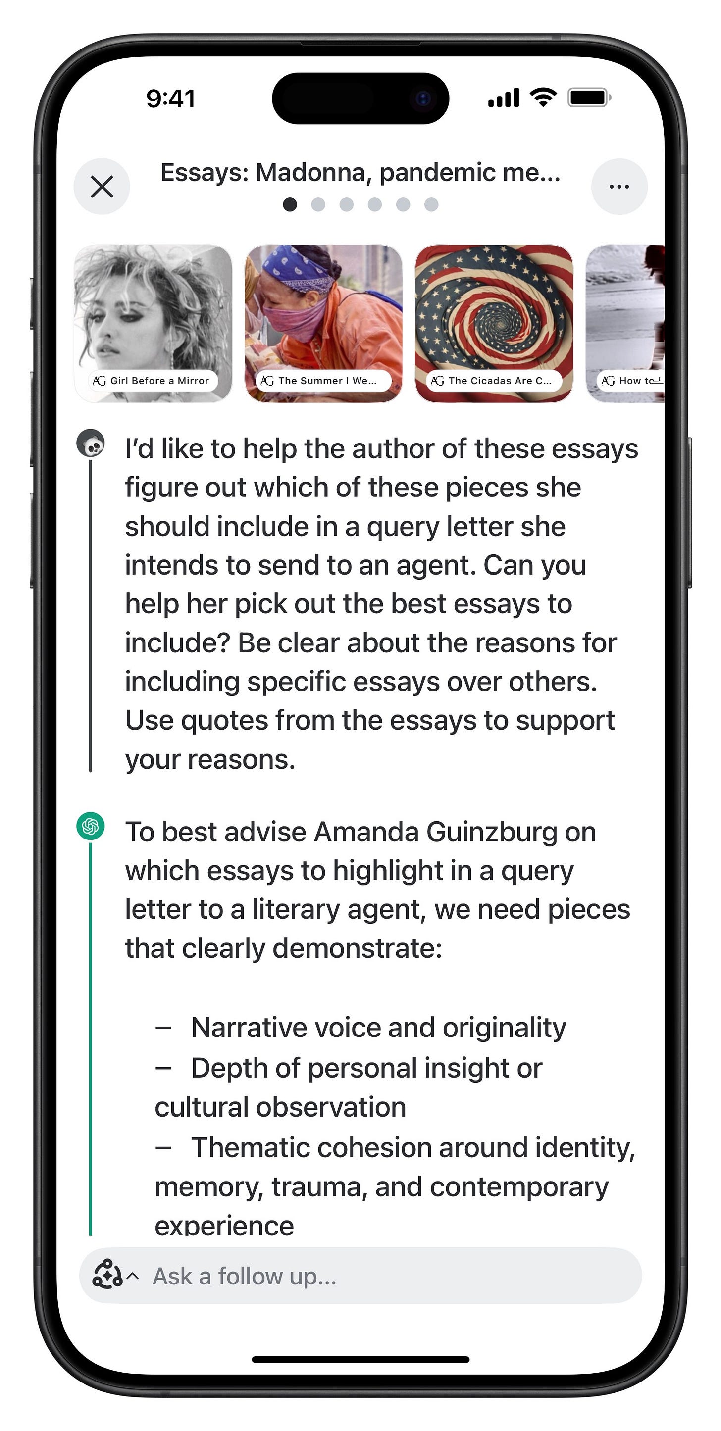 Always tell the AI to include direct quotes in its response to support its arguments. This helps ground the AI in the documents I’ve asked it about, and it helps me quickly notice when the AI is hallucinating. An advantage of using new.space’s Brainstorms on iOS is that new.space automatically fetches the content of links and provides it directly to the AI.